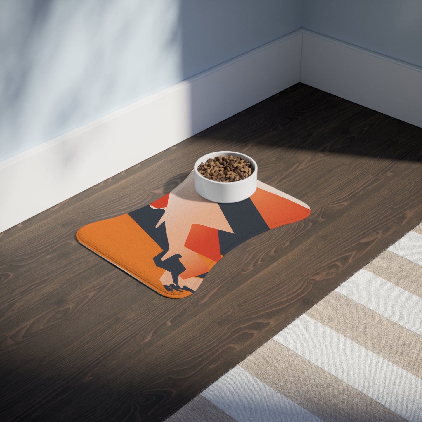 Introducing the Sketchland Pet Feeding Mat: a pet feeding mat designed for a mess-free pet dining experience and artful home decor. Our durable mat is made with a non-slip backing, and a memory foam core, giving your furry friend a safe and comfortable place to eat. The hand-based ancient inspired artistic expression adds a lively pop of color to any home or room. It's the perfect blend of style and pet parent bliss - keeping your floors clean and tidy for hours of pet enjoyment. Give your pet the best possible dining experience with the Sketchland Pet Feeding Mat.