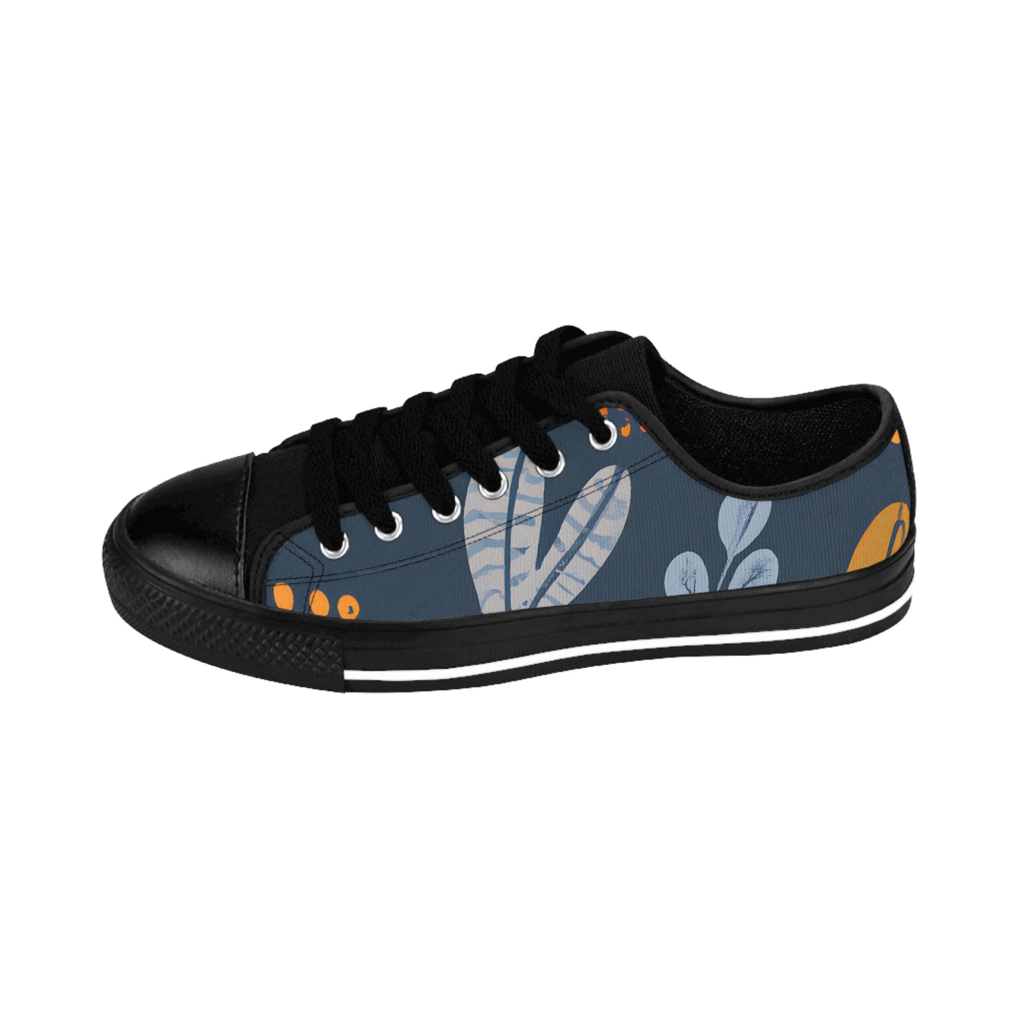 This low-top shoe is perfect for any occasion! Easily dress it up or down with its sleek black leather top and white leather bottom. The unique Vector designs give the shoe a classic yet modern aesthetic. The solid black rubber sole provides support and durability so you can wear them on all your adventures. Let the iconic and classic, fine- art Vector graphics be your statement to the world.