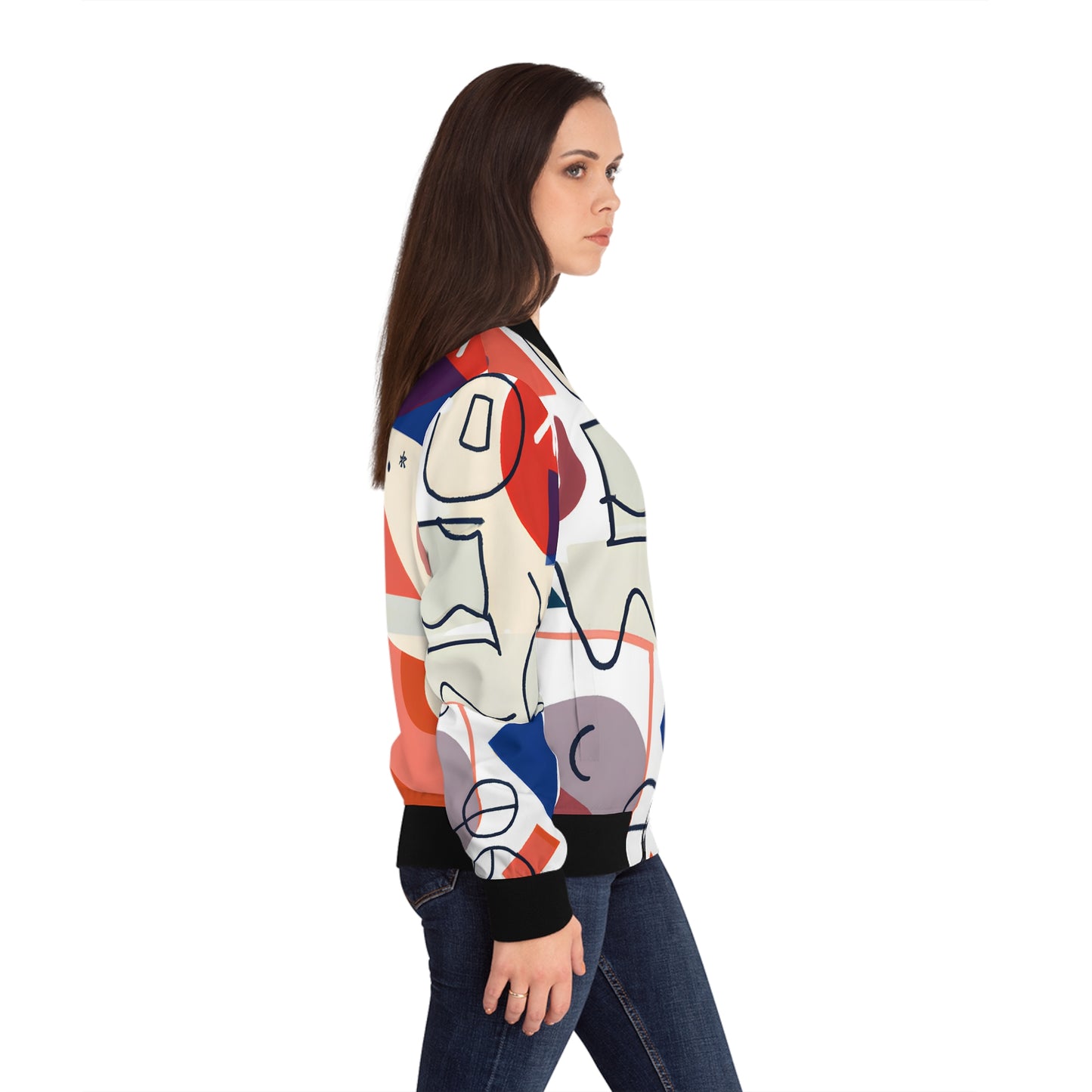 Sketchland Women's Bomber Jacket infuses spirit and vibrancy into traditional designs. This classic jacket offers ribbed stand-up collar, a durable zipper, pocket pouches and a stretchy hem for easy everyday wear. The soft fabric is adorned with fine art aesthetics, making it beautiful and timeless. Perfect for stylish days out and travel, this timeless jacket is perfect for memorable occasions.