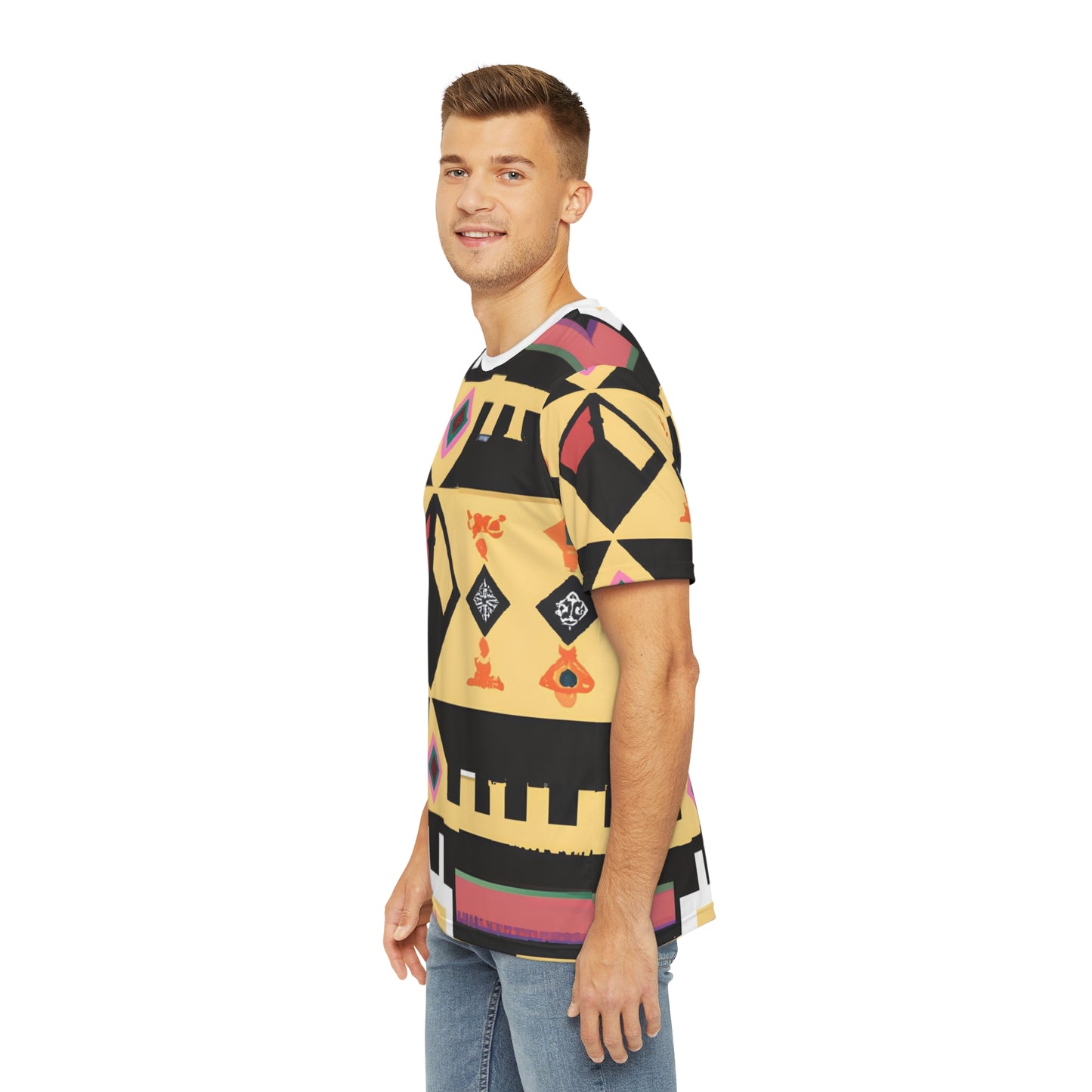 This Sketchland Men's Expression Tee is a must-have addition to any wardrobe! Made from a stretchy, silky-smooth fabric it's designed for comfort and style. It's adorned with familiar cultural motifs that will add a touch of personality to your everyday look. Whether you're wearing this tee for casual occasions or taking it up a notch with a blazer, you'll be sure to get noticed. Buy yours today and express yourself!