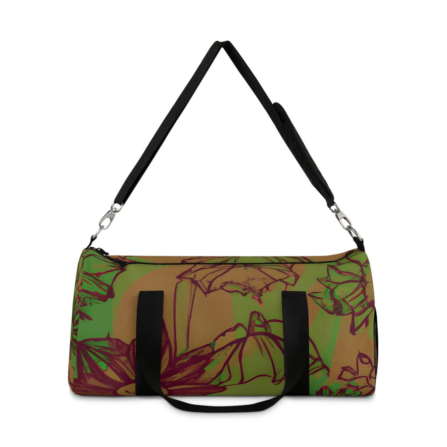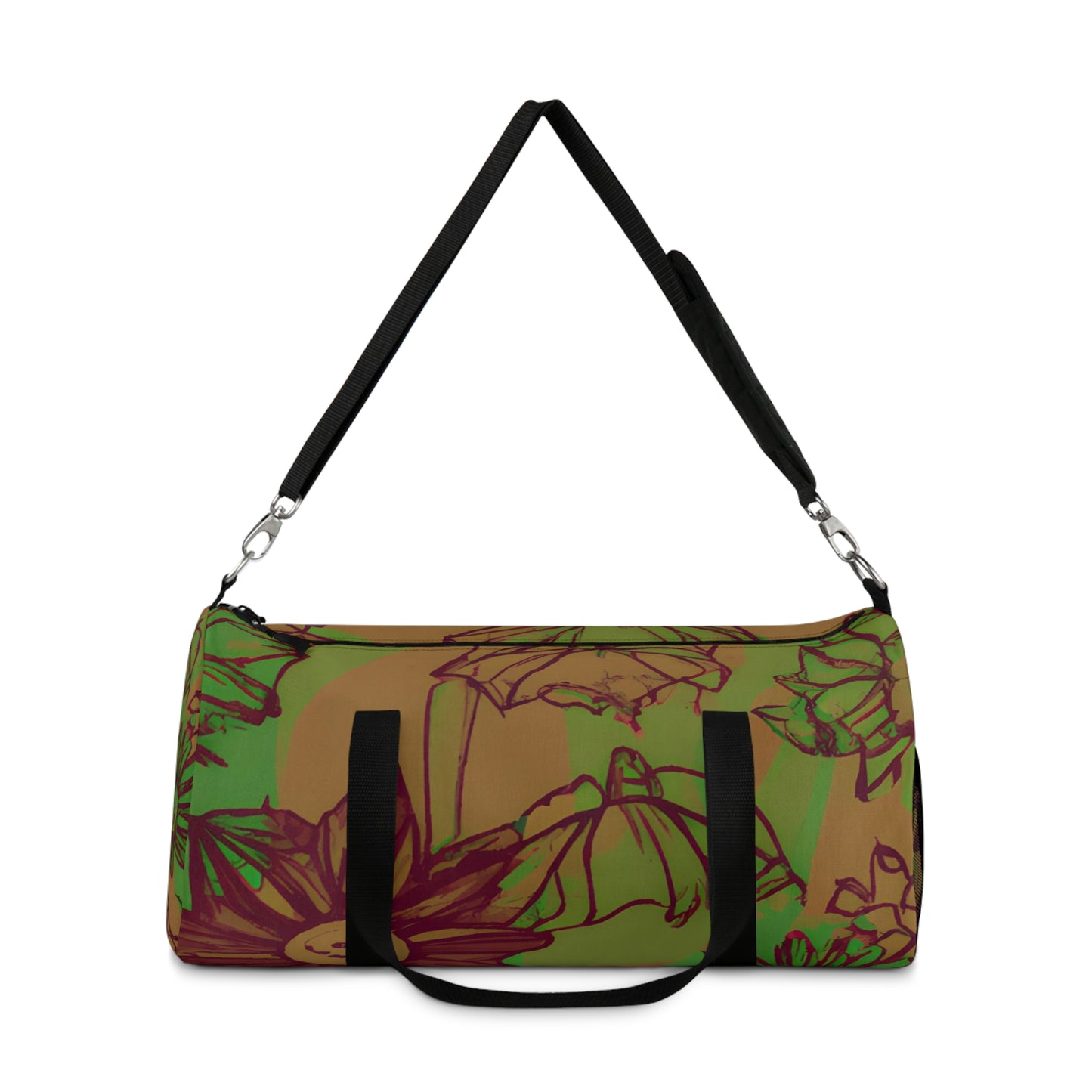 Introducing the Sketchland Duffel Bag! Whether you're headed to the gym or jetting away for a weekend getaway, this stylish bag has you covered. With its canvas construction and bold floral print, the Sketchland Duffel Bag makes a statement. It features a large main compartment, adjustable shoulder strap, and a convenient mesh side pocket. Perfect for all your travel needs!