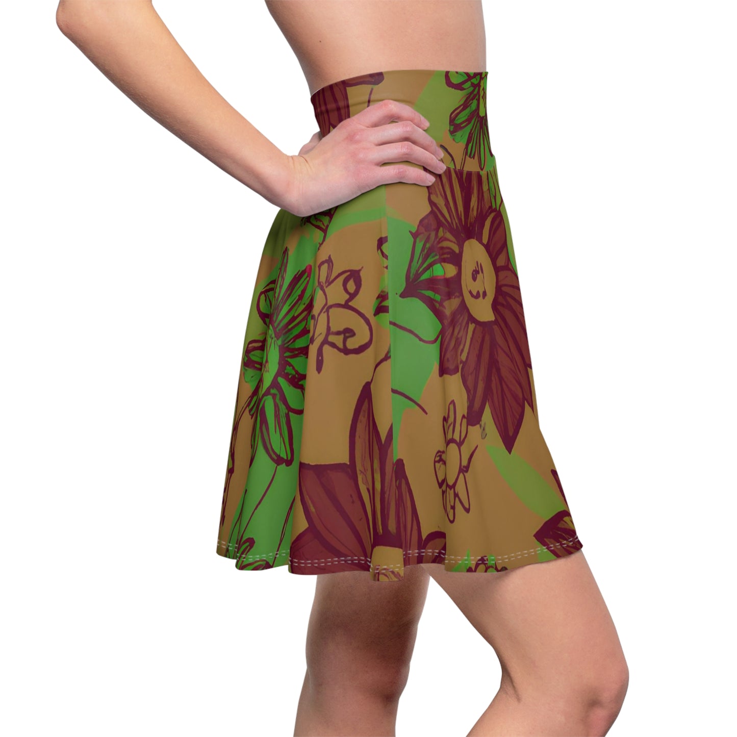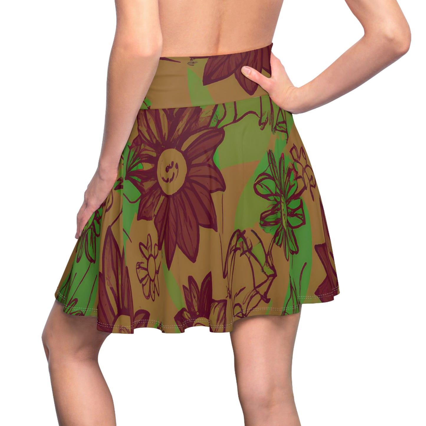 The Sketchland Women's Skater Skirt is crafted from quality fabrics blended together to create a fit that's comfortable and stretchy. Inspired by the beauty of plants and flowers, this skirt evokes decorative elements of nature with its frilly hem and unique pattern. Perfect for special occasions or everyday wear; pair it with a flowy top for a special touch of elegance or keep it casual with a graphic tee and sneakers. Feel charming and beautiful in this skater skirt – it's a versatile must-have for any wardrobe.